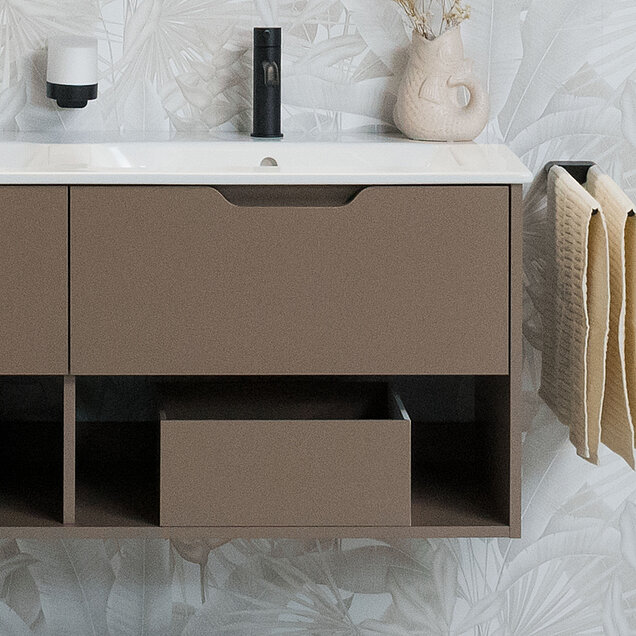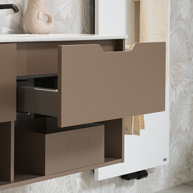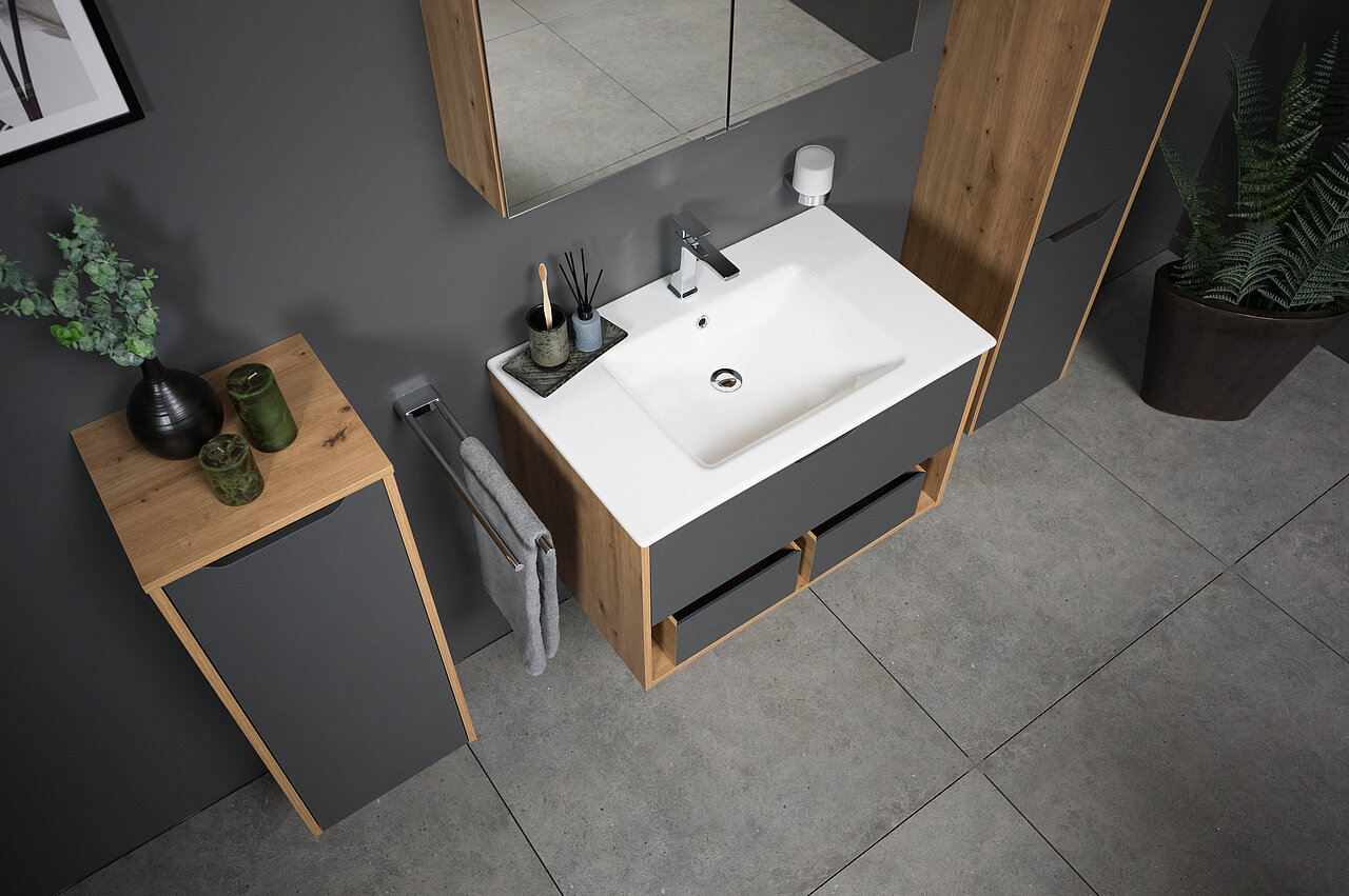 Mit moderner Leichtigkeit der LARIMAR EASY Badmöbeln druch den Alltag.